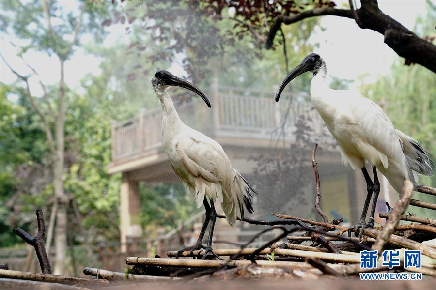 8月11日,上海動物園的兩只白鹮在享受噴淋降溫。當日,上海最高溫度達到35攝氏度,上海動物園開啟園內(nèi)安裝的各種噴淋裝置,讓動物們防暑降溫,樂享清涼。新華社記者張建松攝