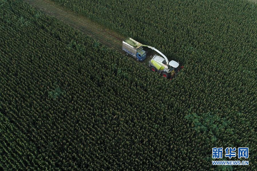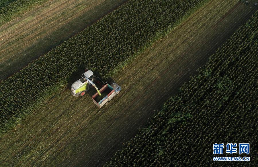 8月11日,灤南縣馬城鎮(zhèn)湛店子村的農(nóng)民使用大型機(jī)械收獲青貯玉米(無(wú)人機(jī)照片)。近日,河北省灤南縣的12萬(wàn)畝青貯玉米陸續(xù)開始收獲,為當(dāng)?shù)啬膛pB(yǎng)殖提供新鮮優(yōu)質(zhì)飼料。作為河北省奶牛養(yǎng)殖大縣,灤南縣近年來(lái)大力推廣奶牛青貯玉米喂養(yǎng)模式,引導(dǎo)農(nóng)民種植青貯玉米,促進(jìn)農(nóng)民增收。新華社記者楊世堯攝