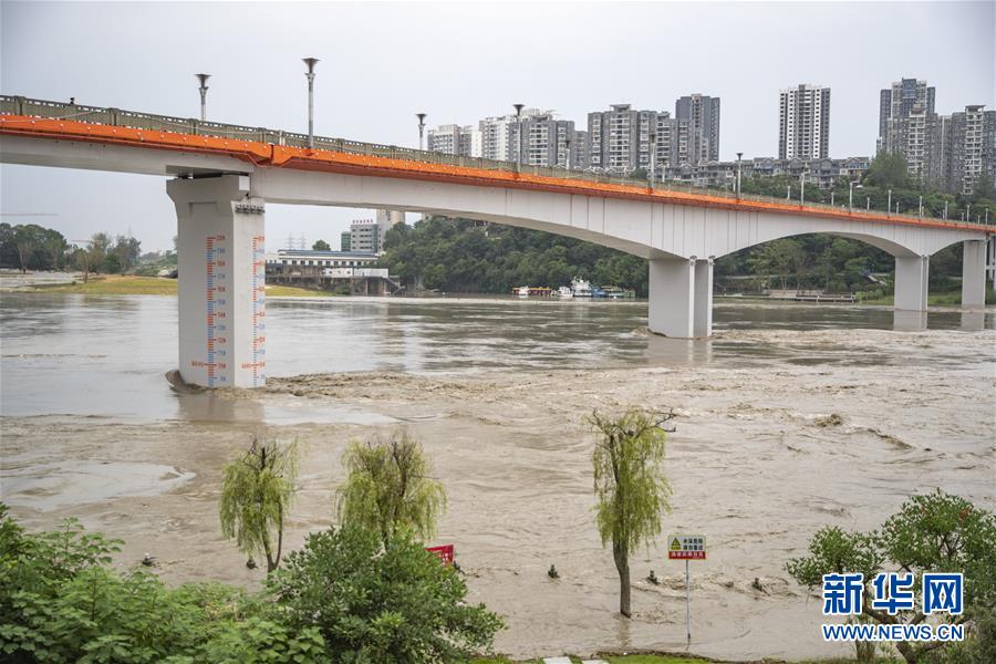 8月12日,洪水通過潼南城區(qū)。受強(qiáng)降雨影響,涪江潼南段迎來過境洪水。新華社記者 黃偉 攝