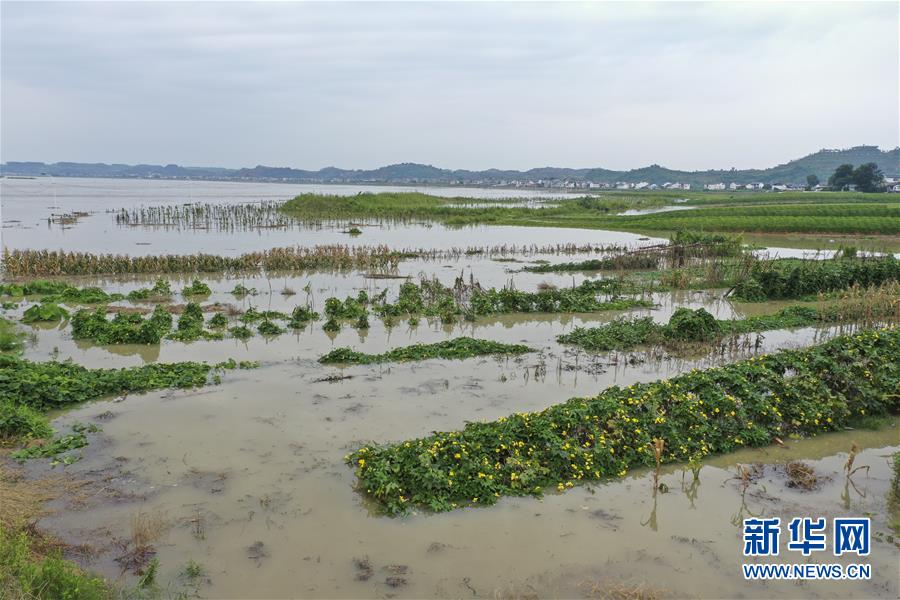8月12日,重慶市潼南區(qū)桂林街道雙壩村蔬菜基地,部分低洼地帶的農(nóng)作物被洪水淹沒(méi)(無(wú)人機(jī)照片)。受強(qiáng)降雨影響,涪江潼南段迎來(lái)過(guò)境洪水。新華社記者 黃偉 攝