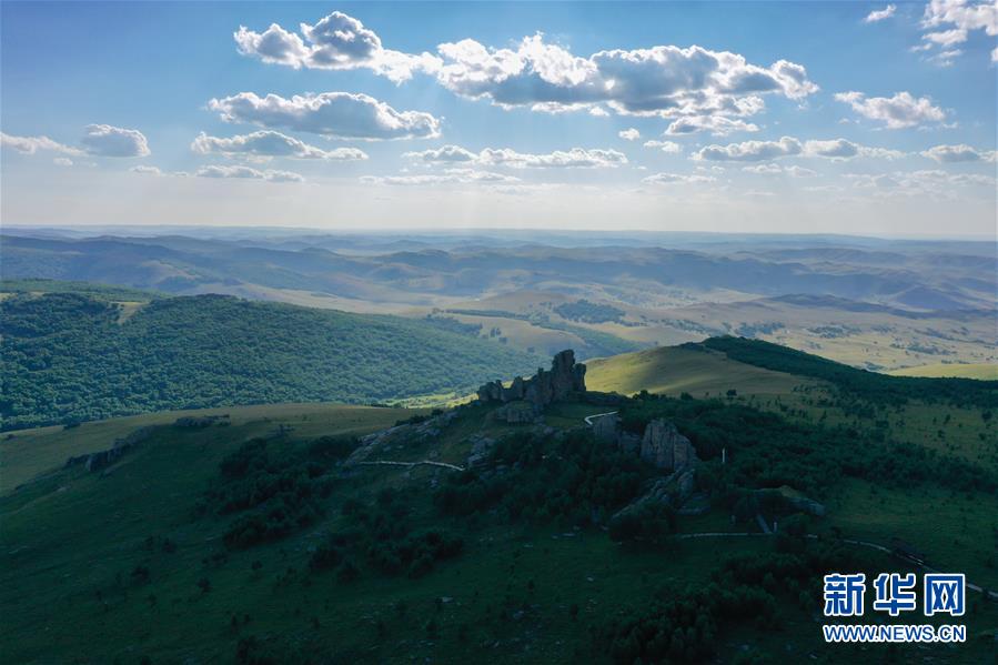 這是8月11日拍攝的克什克騰石陣景區(qū)風景(無人機照片)??耸部蓑v旗位于內(nèi)蒙古自治區(qū)赤峰市西北部,境內(nèi)的湖泊、河流、草原、森林等自然景觀,讓人們流連忘返。新華社記者徐欽攝