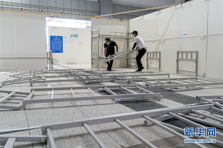 8月13日,工作人員在江漢方艙內進行拆除作業(yè)。 當日,為應對新冠肺炎疫情設立的武漢江漢方艙醫(yī)院正式開始關艙拆除作業(yè)。 據介紹,江漢方艙醫(yī)院是由武漢國際會展中心改建而成,2月5日開始收治第一批患者。截至3月9日休艙,江漢方艙醫(yī)院共收治患者1848人,累計治愈出院1327人、轉出521人。 新華社記者 熊琦 攝