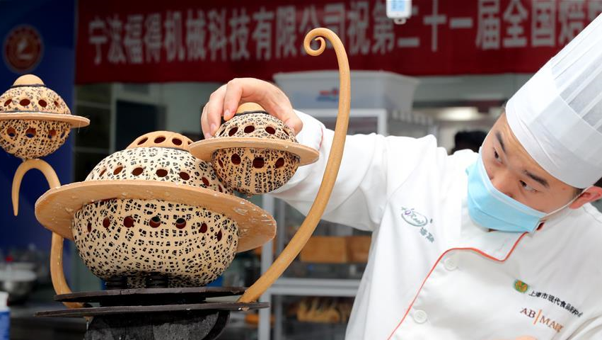 當(dāng)日,第二十一屆全國(guó)焙烤職業(yè)技能競(jìng)賽上海賽區(qū)選拔賽,在上海市現(xiàn)代食品職業(yè)技能培訓(xùn)中心舉行,來(lái)自上海、江蘇、浙江等地的近60名焙烤行業(yè)技師,在藝術(shù)面包、傳統(tǒng)糕點(diǎn)、糖藝和藝術(shù)巧克力等項(xiàng)目中進(jìn)行比拼,在充滿(mǎn)焙烤香氣的賽場(chǎng)上展現(xiàn)技藝。