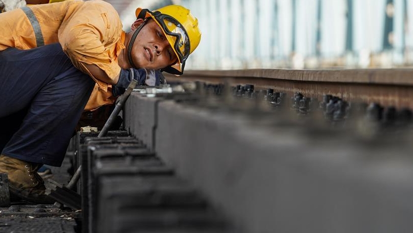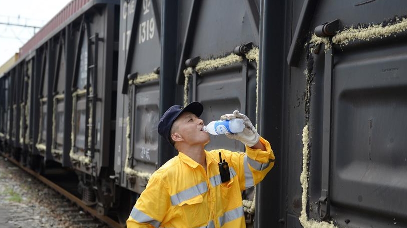在中國(guó)鐵路上海局集團(tuán)有限公司杭州北車(chē)輛段合肥運(yùn)用車(chē)間,386名列車(chē)檢修工人頭頂烈日?qǐng)?jiān)守崗位,確保暑運(yùn)列車(chē)的安全運(yùn)行。