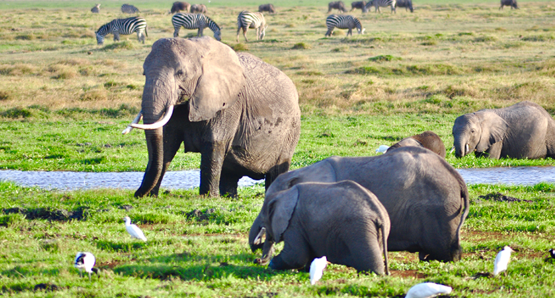 肯尼亞?wèn)|南部,與坦桑尼亞接壤的安博賽利國(guó)家公園,距內(nèi)羅畢240公里,因水草豐美而成為野生非洲大象的樂(lè)園。