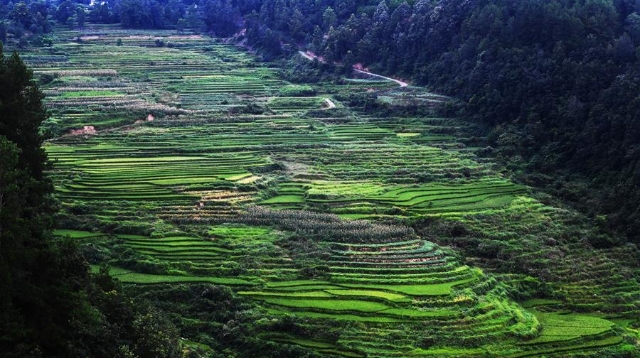 時(shí)下,重慶市彭水苗族土家族自治縣鞍子鎮(zhèn)大林村的梯田景色迷人,構(gòu)成一幅幅山鄉(xiāng)田園美景。