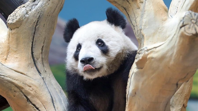 正在享受竹子大餐的廣州長(zhǎng)隆野生動(dòng)物世界大熊貓婷仔被大熊貓隆仔搶食,兩只大熊貓上演一場(chǎng)爭(zhēng)食戲碼。
