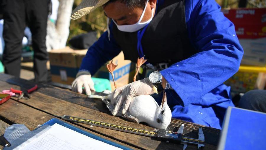 當日,昆明市瀕危動植物收容拯救中心工作人員來到滇池邊,為來昆明越冬的紅嘴鷗開展環(huán)志調(diào)查工作。