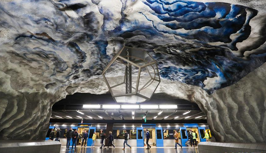 在瑞典首都斯德哥爾摩,每座地鐵站的站臺、墻壁及大廳的風格設計都無一相同,各有特色。