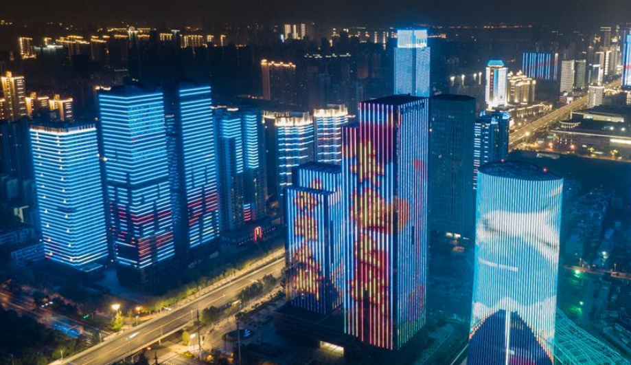 4月8日零時起,武漢市正式解除離漢離鄂通道管控措施,全市景觀照明開啟(無人機(jī)拍攝)。