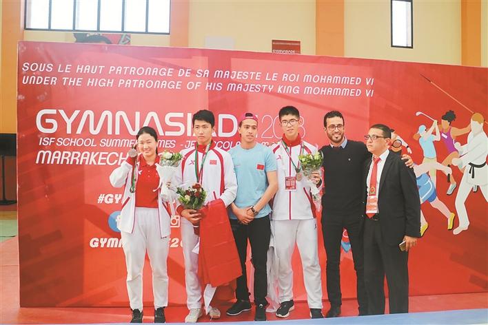 2018世界中學(xué)生運(yùn)動(dòng)會(huì)于當(dāng)?shù)貢r(shí)間5月3日晚在摩洛哥馬拉喀什開幕。在5月4日舉行的首日比賽中,由深圳外國語學(xué)校(以下簡稱“深外”)組隊(duì)的中國擊劍隊(duì)取得一金二銅的好成績。深外學(xué)子秦嘉延也為中國隊(duì)奪得本屆世界中學(xué)生運(yùn)動(dòng)會(huì)男子重劍冠軍。