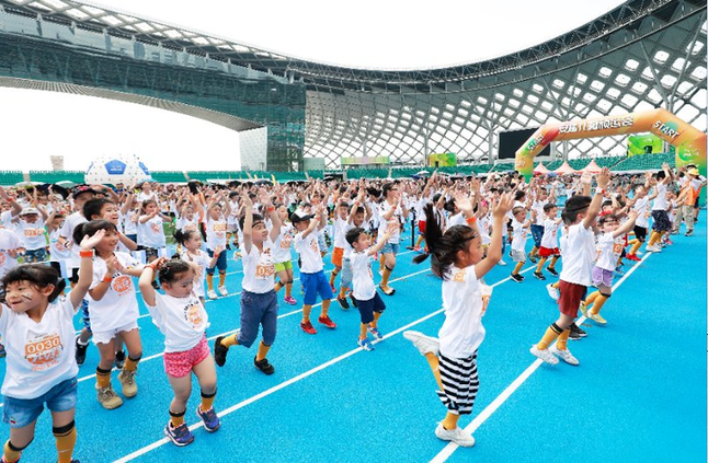 而在環(huán)球足球挑戰(zhàn)環(huán)節(jié),許多小選手是第一次接觸足球。通過數(shù)碼感應(yīng)裝置和小選手們佩戴的智能手環(huán),將帶球、頂球、射門等足球動作實(shí)時(shí)反饋呈現(xiàn)運(yùn)動結(jié)果,其樂無窮的項(xiàng)目讓孩子們一一挑戰(zhàn)停不下來!