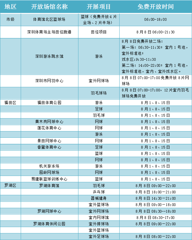 附:場(chǎng)館免費(fèi)開放表