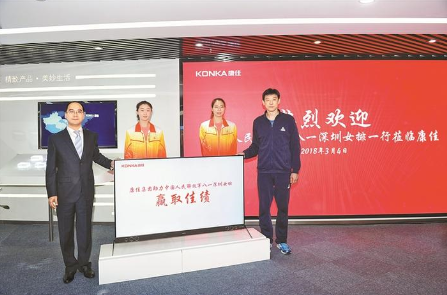 昨天,八一深圳女排來到康佳集團(tuán)深圳總部參觀和慰問。在活動的智能體驗環(huán)節(jié),姑娘們興致勃勃地上前體驗。