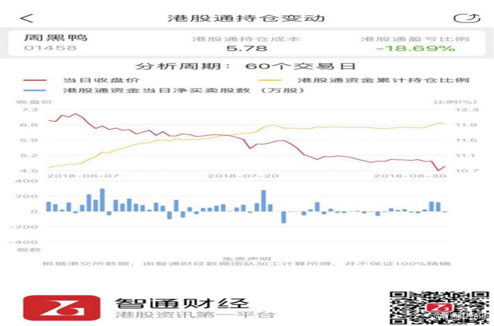 不僅如此,根據(jù)智通財(cái)經(jīng)APP的數(shù)據(jù),近三個(gè)月以來內(nèi)地資金持續(xù)通過港股通渠道加倉(cāng)周黑鴨,與公司股價(jià)下行趨勢(shì)形成明顯的背離。