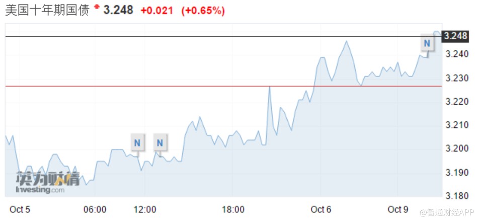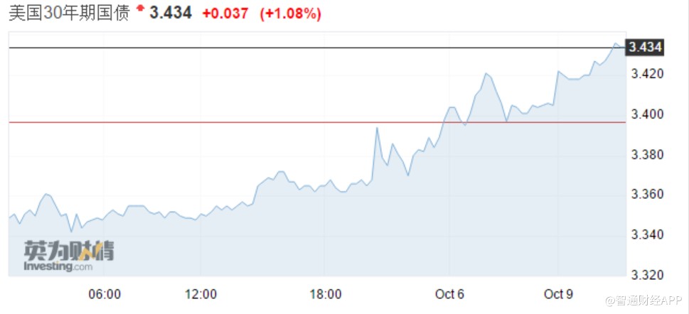 美債持續(xù)遭遇拋售,收益率沖高勢頭不減。智通財(cái)經(jīng)APP獲悉,周二亞市早盤,美國30年期國債收益率觸及3.434%,再度刷新四年新高。10年期美債收益率升至3.248%,刷新七年新高。昨日美債市場因哥倫布日休市一天。