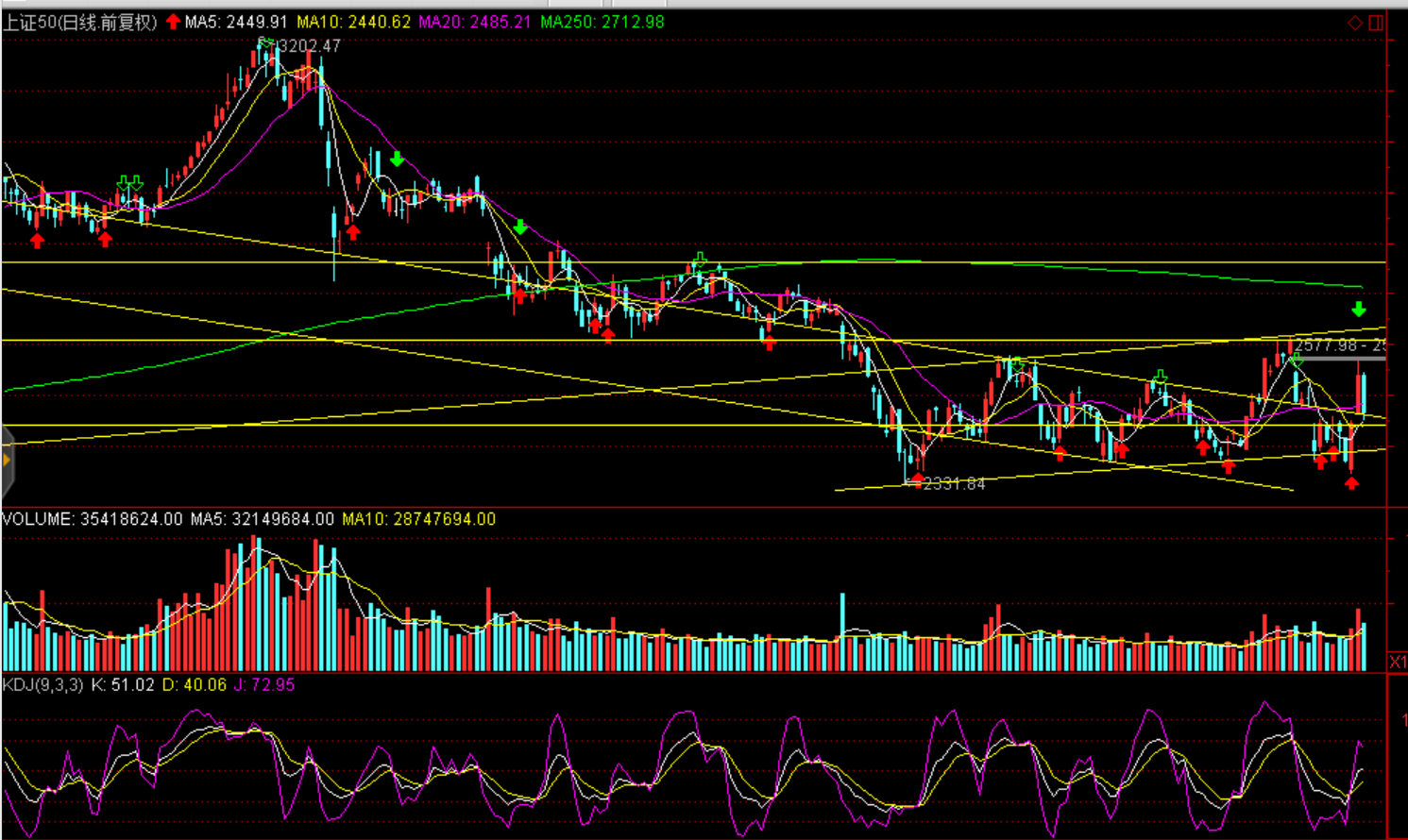 操作建議:海外股市普跌、A股白馬股遭遇機構(gòu)大幅減倉對于短期走勢形成一定拖累,周一跳空缺口處企穩(wěn)概率較大,自2449點以來的反彈處于小級別修正,預計今日探底企穩(wěn)。市場打翻了一瓶茅臺,倒掉了一瓶洋河。白馬股大跌的背后是以滬深港通的北向資金為代表的機構(gòu)資金調(diào)倉換股所引發(fā),歷史經(jīng)驗看茅臺的大跌隨后出現(xiàn)階段下跌幾率較大,謹慎白馬股補跌。創(chuàng)業(yè)板偏強走勢,關注機構(gòu)資金調(diào)倉方向。