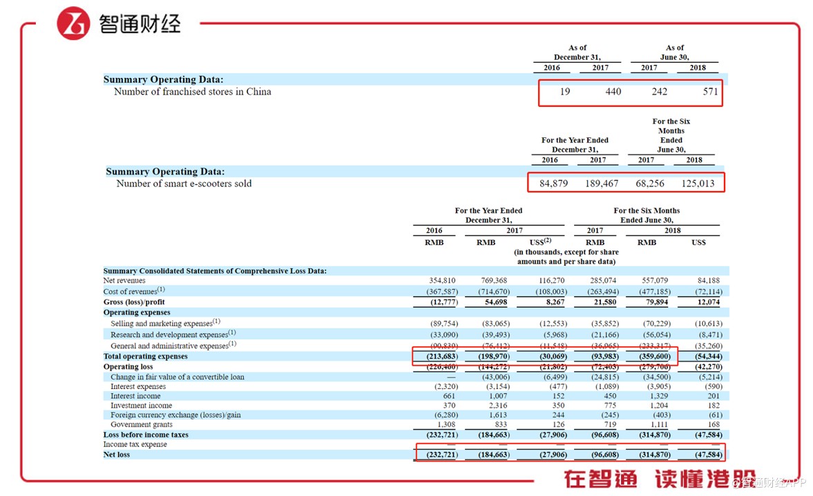 但是電車銷售量卻沒有呈同速度上升,數(shù)據(jù)顯示銷量同比約為2倍的速度增長。而隨之帶來的確實更高的運營費用,2018年上半年運營支出為3.6億人民幣,為去年同期0.94億的3.8倍,也因此凈虧損由去年上半年的0.97億增加到今年同期的3.1億人民幣。