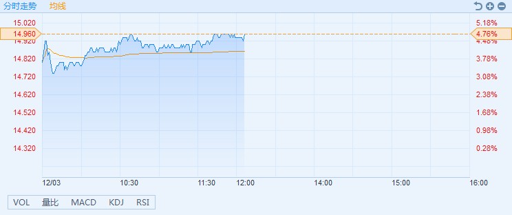 智通財(cái)經(jīng)APP獲悉,本屆G20峰會(huì)上,中美就經(jīng)貿(mào)問題達(dá)成共識(shí),決定停止升級(jí)關(guān)稅等貿(mào)易限制措施。貿(mào)易摩擦的超預(yù)期緩和,為小米憑借商業(yè)模式創(chuàng)新和技術(shù)創(chuàng)新參與國際競爭松綁,該股股價(jià)應(yīng)聲而漲。截至13時(shí)05分,漲4.76%,報(bào)價(jià)14.96港元,成交額4.03億。
