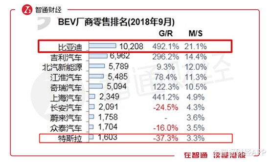 據統(tǒng)計,9月份國內純電動車銷量來看,前十名還是國產車的天下,比亞迪以10208臺銷量,21.1%市場份額穩(wěn)居第一,而特斯拉僅有1603臺銷量,3.3%市場份額,并且銷量還在急劇下滑。