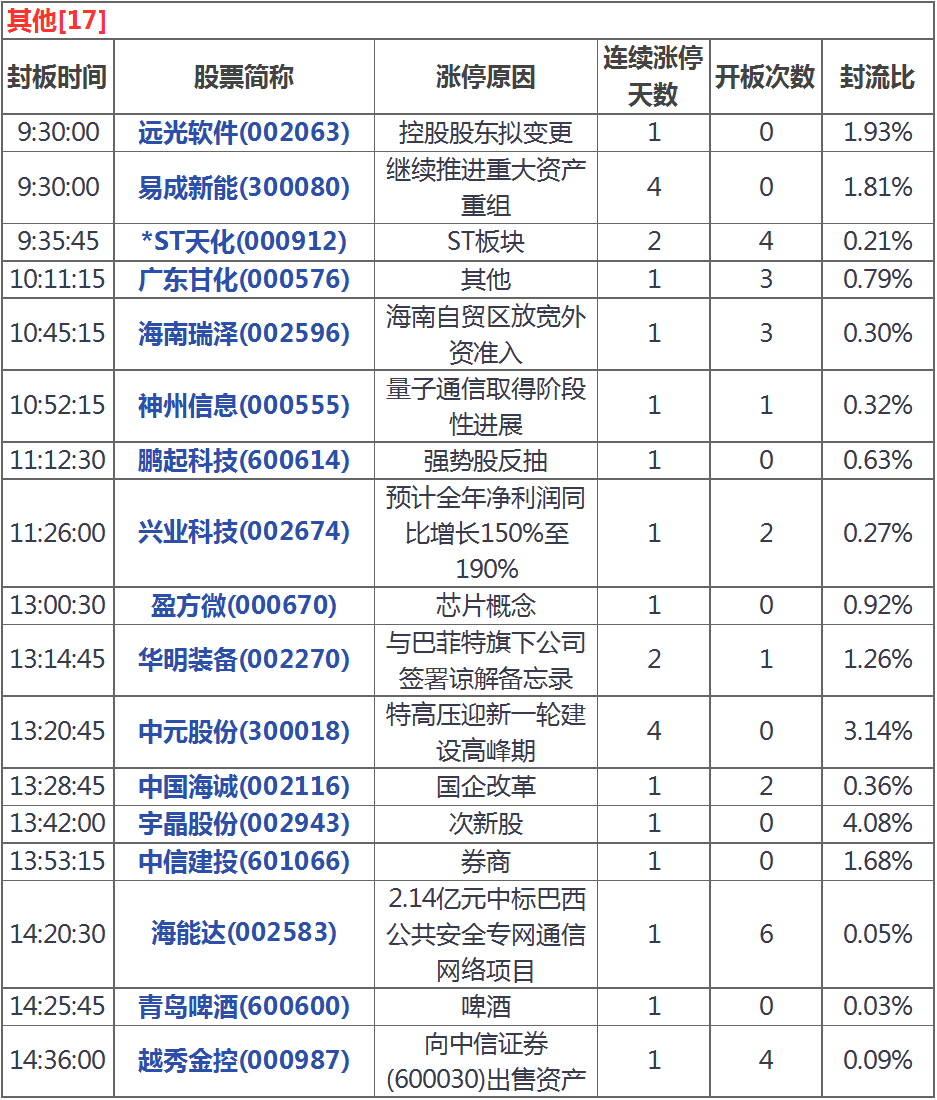 今天漲停家數(shù)較上一交易日有所增加,兩市51家漲停;跌停8家。成交量方面,滬市成交1374億元,深市成交1822億元,兩市總成交額約為3196元,較上一交易日放量365億元。盤面上,白酒、工業(yè)互聯(lián)網(wǎng)、券商導(dǎo)等板塊漲幅居前,煤炭、超導(dǎo)等板塊跌幅居前。