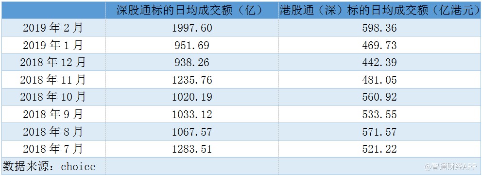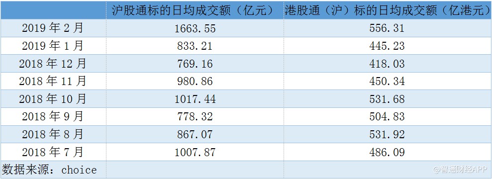 伴隨著股市上漲的,是兩地資本互通的熱度。據(jù)智通財經(jīng)APP統(tǒng)計,北上資金方面,2019年2月,滬(深)股通標(biāo)的日均成交額分別為1663.55億、1997.6億;南下資金方面,滬(深)港股通日均成交額分別為556.31億、598.36億,均相較于其他月份顯著放大。