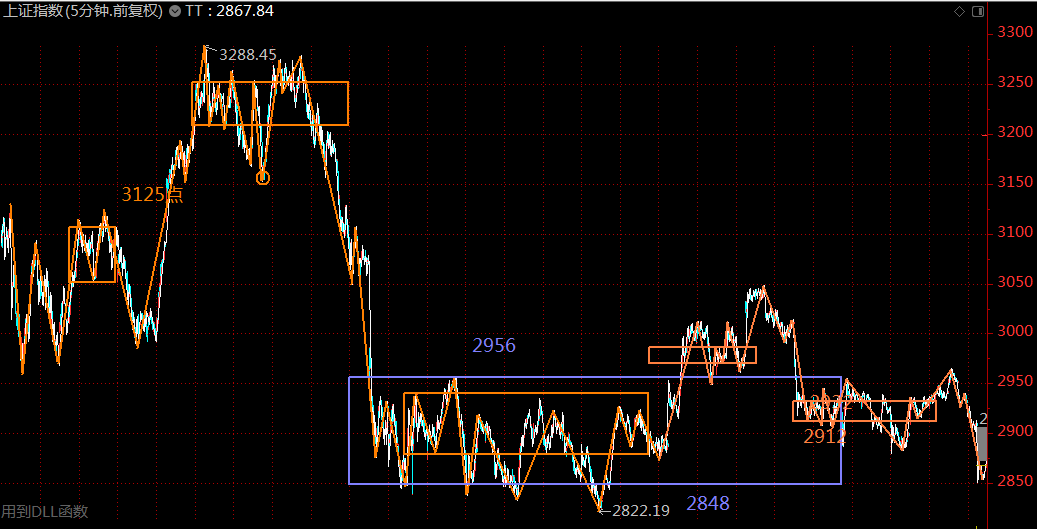 上周壬午說(shuō),只要站穩(wěn)了2956點(diǎn),大盤(pán)大概率會(huì)往上拓展空間,結(jié)果大盤(pán)剛過(guò)2956點(diǎn)就快速回落。隨后在議息會(huì)議及特朗普的共同努力下,快速?gòu)?965點(diǎn)跌回箱體底部2948點(diǎn),并在周五早盤(pán)確認(rèn)30分鐘中樞下軌支撐有效。短線(xiàn)來(lái)說(shuō),市場(chǎng)已經(jīng)超跌,且線(xiàn)段內(nèi)背馳,本周周初市場(chǎng)將展開(kāi)反彈,因此,有倉(cāng)位的投資者周初可耐心等待反彈,在滬指接近2900點(diǎn)的時(shí)候降低倉(cāng)位,等待再次探底。在市場(chǎng)回落過(guò)程中,2848點(diǎn)與2822點(diǎn)的支撐強(qiáng)度需嚴(yán)密關(guān)注,謹(jǐn)防超預(yù)期的下跌出現(xiàn)。