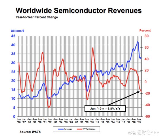 SIA總裁兼執(zhí)行長John Neuffer在聲明中指出,2019年上半年,全球半導體銷售仍處于下滑趨勢,同比下滑14.5%。(陳雨)