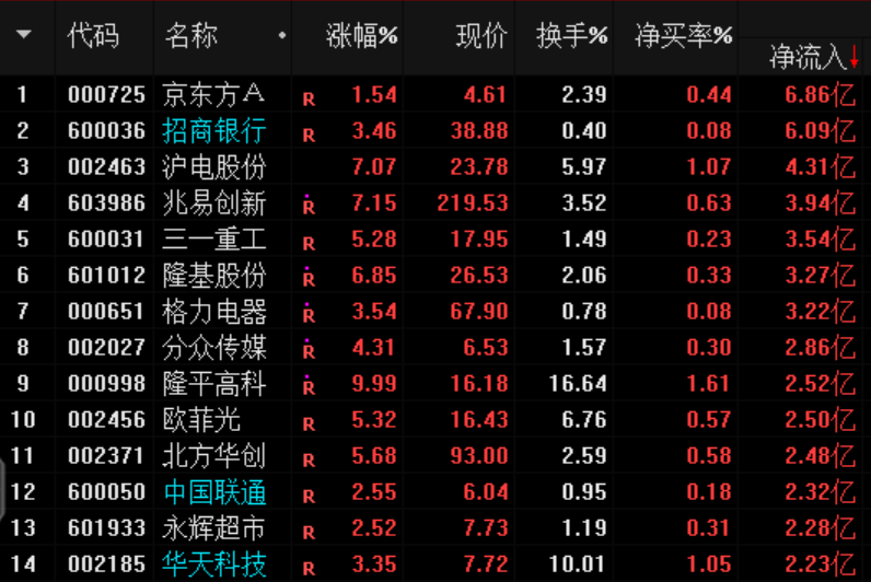 周四兩市資金凈流入居前公司:其中隆平高科(000998)龍虎榜成交顯示機構席位大局買入。