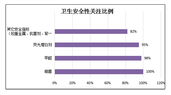 安全性能指標(biāo)包括微生物、甲醛、pH、可遷移性熒光增白劑、化學(xué)物質(zhì)等五個(gè)方面。