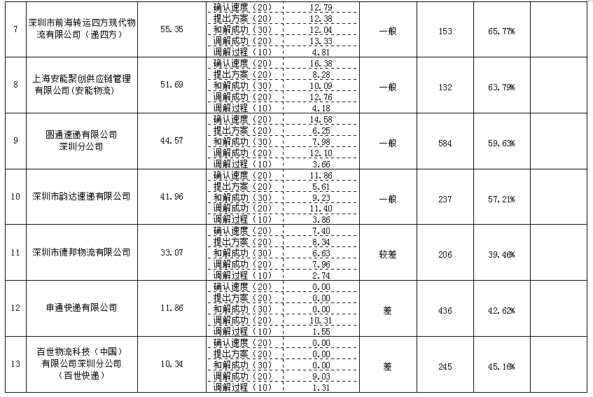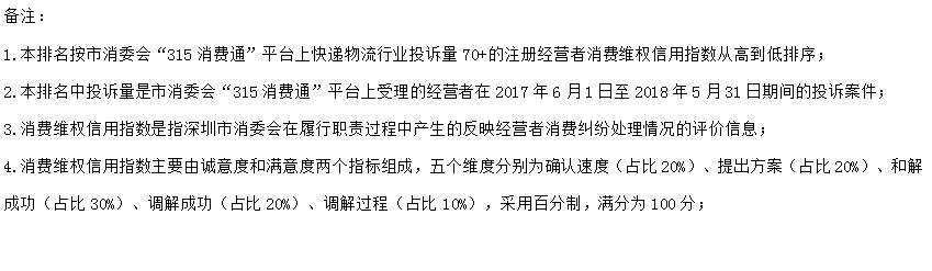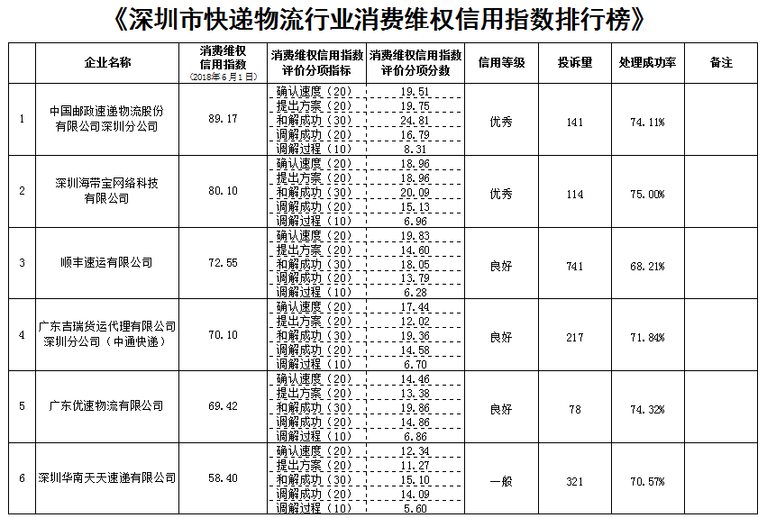 深圳市消費(fèi)者委員會發(fā)布快遞物流行業(yè)消費(fèi)維權(quán)信用指數(shù)排行榜