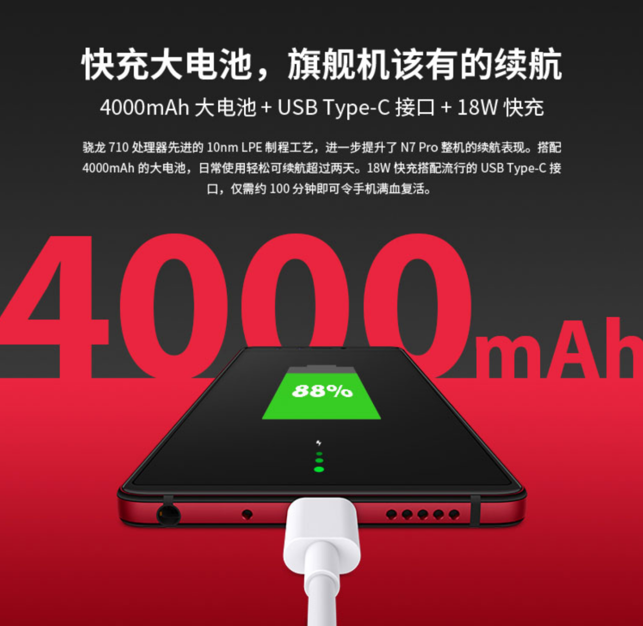 360手機(jī)N7 Pro采用了雙面玻璃機(jī)身設(shè)計(jì),無劉海5.99英寸全面屏,分辨率2160×1080像素,有珊瑚紅和瑪瑙黑兩色可選。作為2018年度的旗艦機(jī)型,配置上,N7 Pro搭載當(dāng)前高通家族中最受關(guān)注的驍龍710處理器,4000mAh大容量電池,支持18W快充,官方宣稱20分鐘可充電30%,100分鐘可充滿。此外在拍照方面,360手機(jī)N7 Pro采用了堪稱耀眼的四攝設(shè)計(jì)。