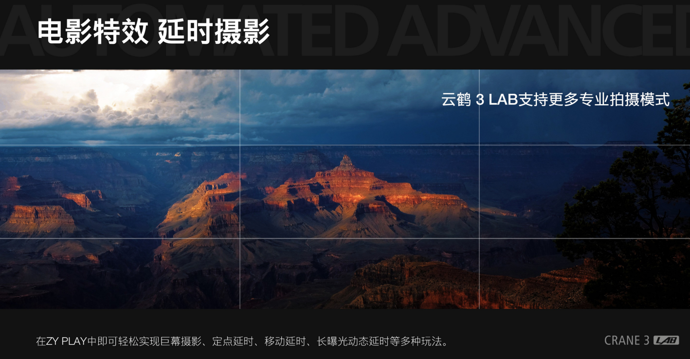 云鶴3 LAB針對(duì)延時(shí)攝影作出深度優(yōu)化,探索出更多高階玩法:靜態(tài)延時(shí)、移動(dòng)延時(shí)、軌跡延時(shí)、大范圍延時(shí)、三軸延時(shí)、焦點(diǎn)延時(shí)、巨幕攝影、三維夢(mèng)境,瘋狗模式。