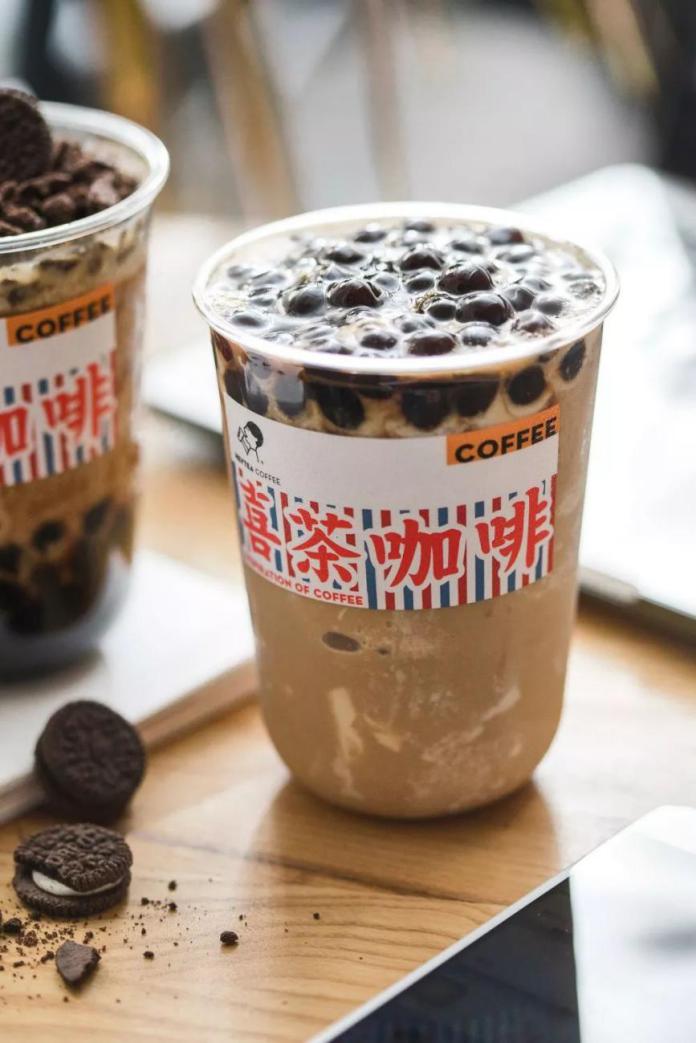 咖啡波波雙拼:選用喜茶人氣原料波波、奶凍、奧利奧,融入咖啡沙冰中,帶來豐富口感。