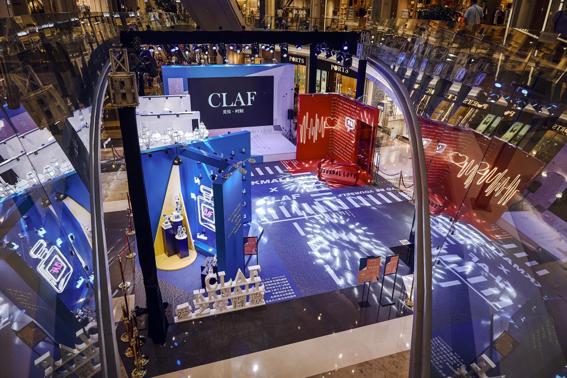 愛之全體驗靜態(tài)藝術(shù)展分為四個區(qū)域,分別對應(yīng) C-L-A-F(克拉時刻的英文),C對應(yīng)白色區(qū)域,代表 C lassic(經(jīng)典 ),在“C lassic”的區(qū)域中,洛杉磯郡藝術(shù)博物館標(biāo)志地標(biāo)-燈柱( Urban Light)與文藝復(fù)興的石膏像相結(jié)合,打造一片純凈又不失時尚的打卡區(qū)域。L對應(yīng)紅色區(qū)域,代表Love(愛),設(shè)計了以“心電感應(yīng)”的一堵墻面,描繪遇到“愛情”的場景,從“正?!钡男碾妶D到遇見“愛”的怦怦心跳,純紅色的背景是打卡拍照的最佳地點。 A對應(yīng)藍(lán)色區(qū)域,代表Aftertaste(回味),整體背景運用國際克萊因藍(lán),形成撞色的沖擊感。利用香水瓶,打造了一個藍(lán)色的“氣味收藏室”。F對應(yīng)黑色區(qū)域,代表Forever(永恒),運用霓虹燈管打造神秘時尚的氛圍,就像鉆石一樣在黑暗中閃爍,黑色背景成為許多人打卡點,仿佛電影橋段般的文字設(shè)計,非常適合還原電影場景。
