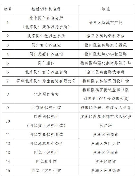 具體被投訴機(jī)構(gòu)名單(由消費(fèi)者提供的名稱(chēng)及地址)如下: