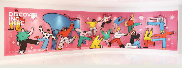 此外,4位國際插畫家聯(lián)合打造藝術(shù)櫥窗展覽《F ashion Street 》,則為卓悅中心帶來了更加色彩斑斕的視覺體驗(yàn):Tess Smith Roberts(英國)明快的色彩與童趣的風(fēng)格,充滿治愈感;Lisa Tegtmeier(德國)以抽象的幾何形人物,簡單卻引人注目;Jisu Choi(韓國)通過平面中的立體描繪,展現(xiàn)出卓悅中心奇幻豐富的體驗(yàn);Decue Wu(美國)則以“城市日記”的理念,充分展現(xiàn)出“城市T臺(tái)”的時(shí)尚氣質(zhì)。