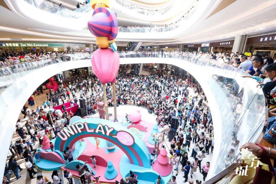 另一個(gè)是壹方城自行設(shè)計(jì)的6大自有IP——UNIPLAY家族,6個(gè)IP形象萌態(tài)可掬,受到了消費(fèi)者的普遍認(rèn)可。壹方城還通過(guò)制作公仔、帆布袋等實(shí)用IP周邊,以及與國(guó)際一線化妝品LANC?ME以及喜茶、潮宏基、來(lái)電、我是酸奶君等品牌聯(lián)名,巧妙加深與消費(fèi)者的情感鏈接,成就獨(dú)特的壹方記憶。
