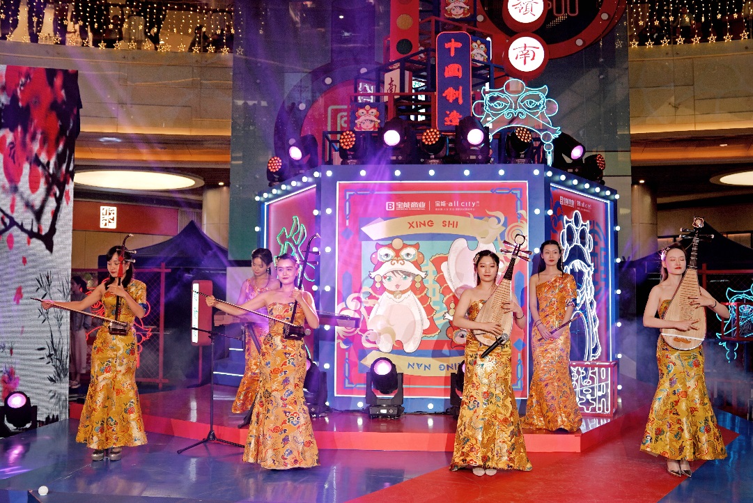 慶典當(dāng)天,豐富多彩的異業(yè)活動(dòng)貫穿全場(chǎng),紅包雨搖一搖的現(xiàn)場(chǎng)互動(dòng)小游戲?yàn)閼c典帶來(lái)了一波又一波歡呼;街舞串燒、國(guó)潮T臺(tái)大秀、樂隊(duì)演奏、漢服快閃秀、近景魔術(shù)等精彩表演更是將現(xiàn)場(chǎng)氣氛不斷推向高潮。作為今年周年慶的主打形象,“國(guó)潮 IP”——南獅霸氣亮相,呆萌與喜慶的形象一出場(chǎng)便引爆現(xiàn)場(chǎng),成為全場(chǎng)焦點(diǎn)。富有中國(guó)傳統(tǒng)文化內(nèi)涵的南獅與西方潮流電音的巧妙結(jié)合,碰撞出新穎而奇妙的火花,也讓在場(chǎng)觀眾體驗(yàn)到了一場(chǎng)耳目一新的視聽盛宴。
