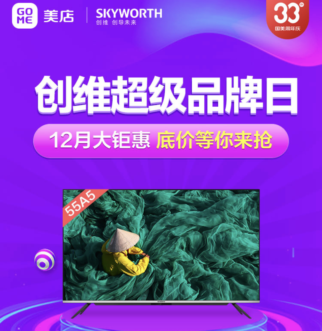國(guó)美33周年慶期間,創(chuàng)維超級(jí)品牌日也在國(guó)美美店同步開啟,相比于其他品牌,創(chuàng)維電視沒(méi)有那么多活動(dòng),僅僅采用了價(jià)格直降的方式,簡(jiǎn)單粗暴,直接購(gòu)買即可。