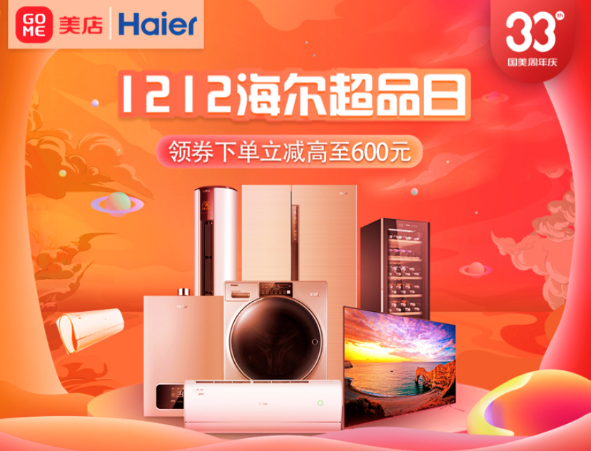 12月12日-15日,33周年生日之際,國(guó)美與海爾再度攜手,國(guó)美美店帶來(lái)1212海爾超級(jí)品牌日活動(dòng),涵蓋了海爾冰箱、洗衣機(jī)、空調(diào)、電視、廚房衛(wèi)浴等多個(gè)品類豐富產(chǎn)品,多重優(yōu)惠福利、六大承諾保障、延保清洗服務(wù),其中多個(gè)年度爆款值得期待。