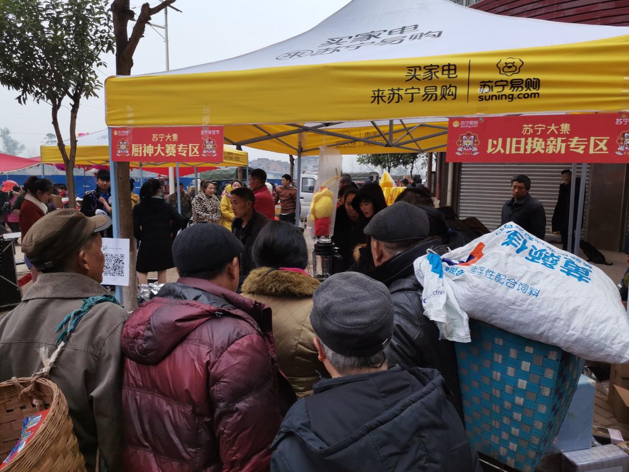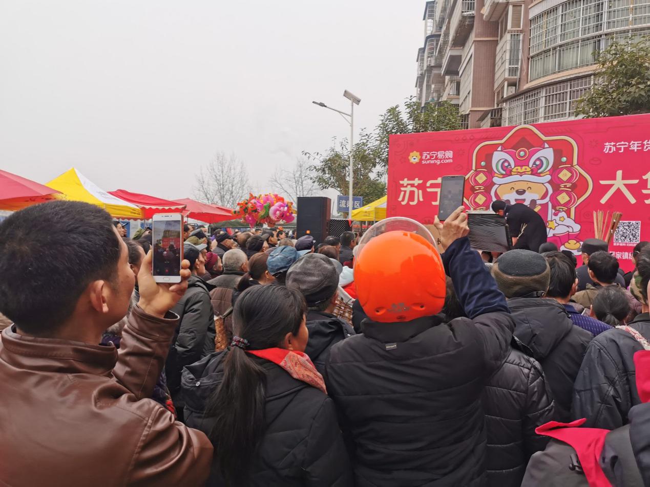 1月12日開始,蘇寧年貨集市活動(dòng)陸續(xù)在邯鄲馬頭鎮(zhèn)、淮安十里營、湖北潛江等下沉市場(chǎng)落地。