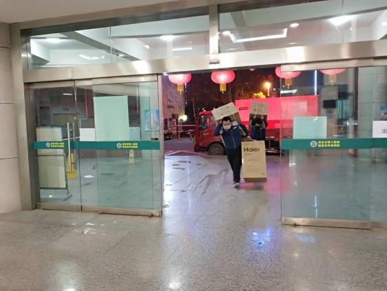 接到需求后,武漢國美攜手海爾迅速作出反應(yīng),調(diào)撥就近庫存12臺空調(diào),捐贈給枝江市人民醫(yī)院。武漢安迅物流兩位送裝工程師接到任務(wù)后,在所有道路和小區(qū)均封閉的情況下排除萬難,以最快速度驅(qū)車于9日下午12臺空調(diào)送達(dá)到枝江市人民醫(yī)院。