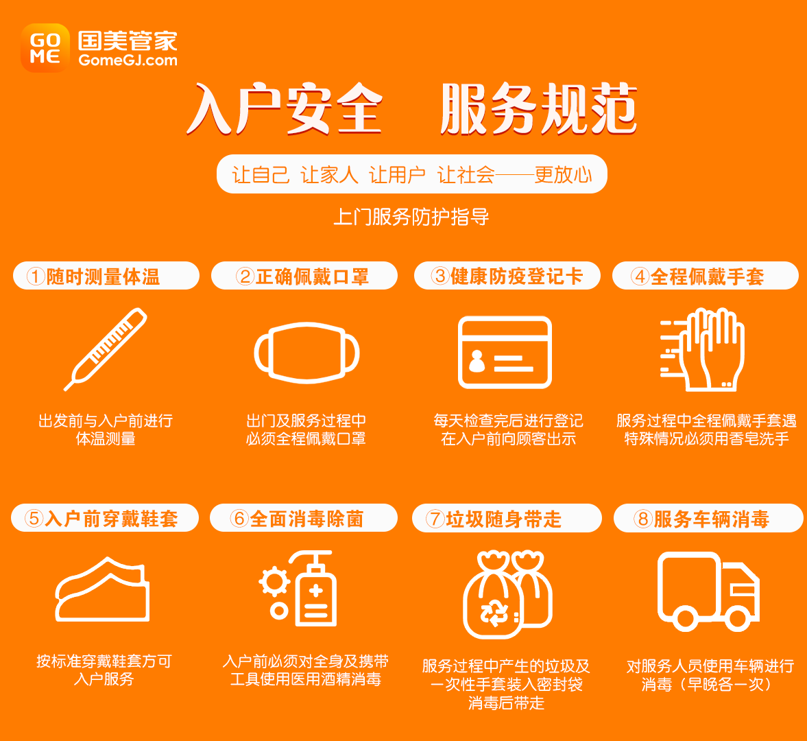 第二天上午,國美管家的售后服務(wù)工程師唐勝(化名)在小區(qū)測(cè)溫登記后按響了李女士家的門鈴,向李女士出示了“健康防疫登記卡”,拿出體溫槍對(duì)準(zhǔn)手腕、額頭分別測(cè)溫,均顯示正常。在門外唐勝還更換了新的口罩、佩戴防護(hù)手套、穿戴好鞋套,在自身全面消毒后才進(jìn)入李女士家中。