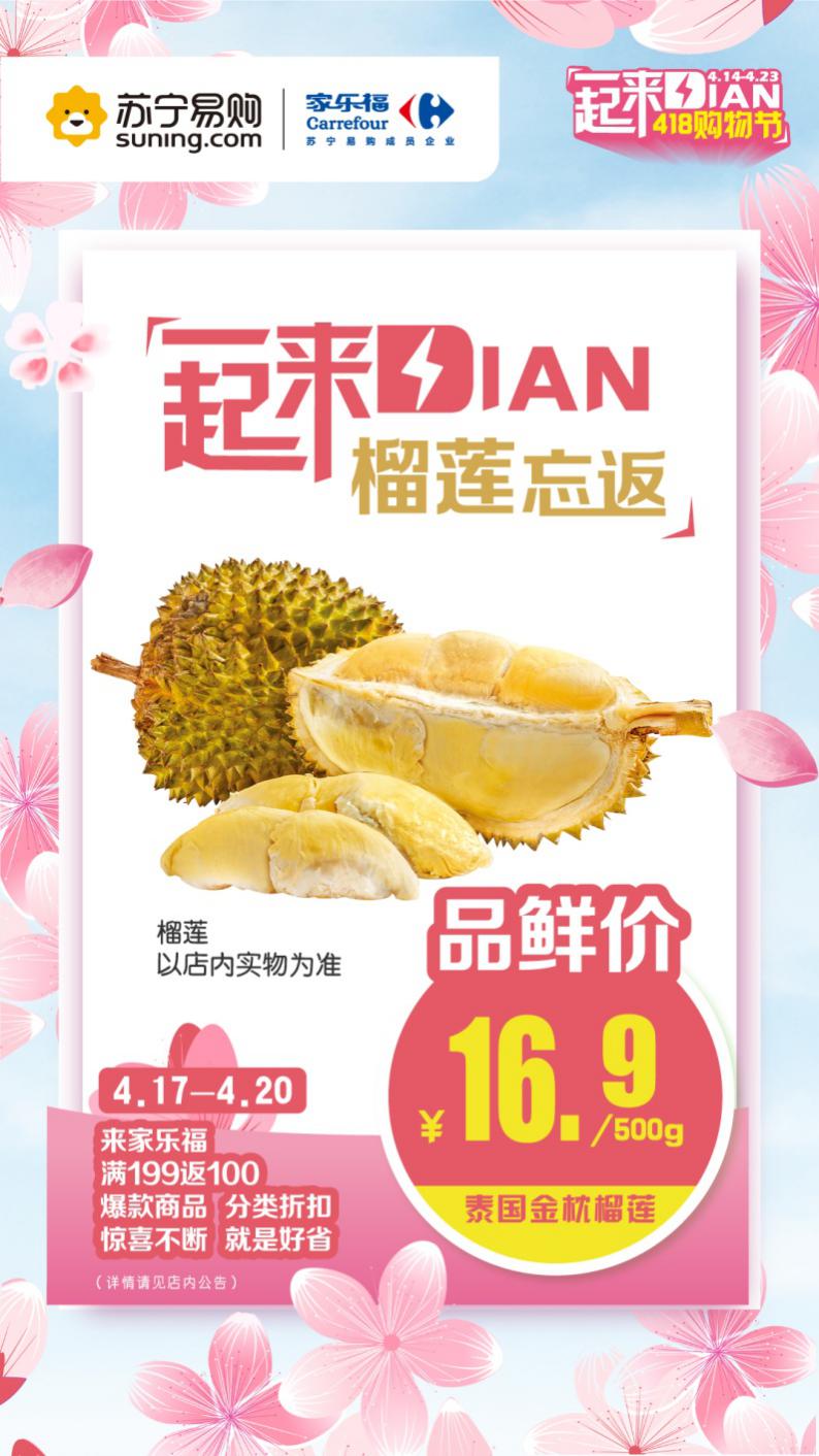 據(jù)有關(guān)方面透露,即將啟幕的“4.18一起來Dian”購物節(jié),家樂福將加碼福利,推出重磅優(yōu)惠的同時(shí),奉上多款強(qiáng)勢優(yōu)質(zhì)生鮮爆品,勢要擊穿底價(jià)。以“水果之王”榴蓮為例,每斤16.9元的限時(shí)品鮮價(jià)。