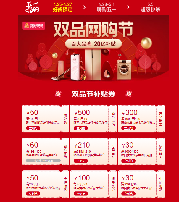 貫穿整個(gè)五一假期的“雙品網(wǎng)購(gòu)節(jié)”已經(jīng)開(kāi)啟,蘇寧、阿里等電商平臺(tái)紛紛上線(xiàn)促銷(xiāo)活動(dòng)。消費(fèi)補(bǔ)貼怎么領(lǐng),有哪些值得買(mǎi)的品質(zhì)好物,還有哪些活動(dòng)值得期待?消費(fèi)回暖,買(mǎi)買(mǎi)買(mǎi)的熱情迎來(lái)釋放。