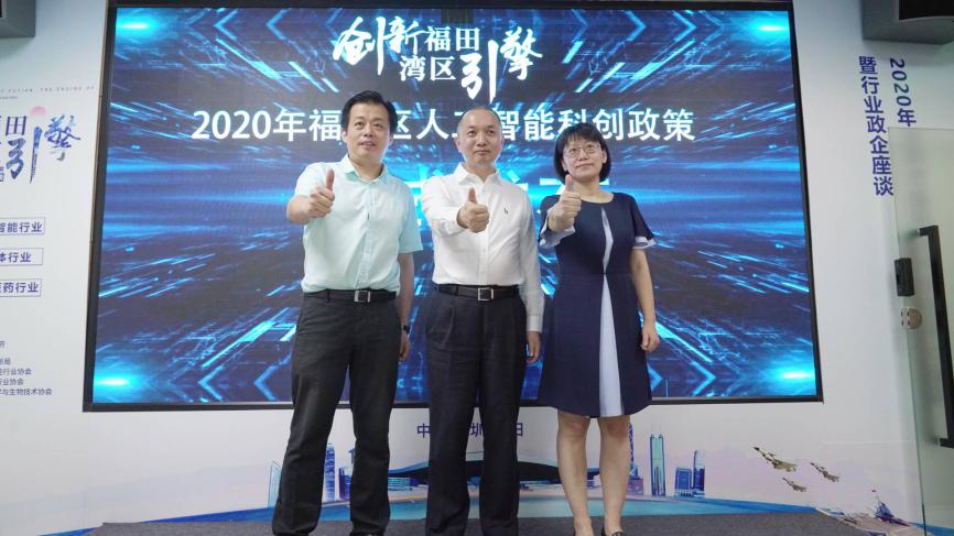 福田區(qū)人民政府歐陽繪宇副區(qū)長、福田區(qū)科技創(chuàng)新局張忠暉局長、人工智能行業(yè)協(xié)會(huì)郎麗艷執(zhí)行會(huì)長聯(lián)合啟動(dòng)“創(chuàng)新福田,灣區(qū)引擎”2020年福田區(qū)人工智能科創(chuàng)政策正式發(fā)布儀式。