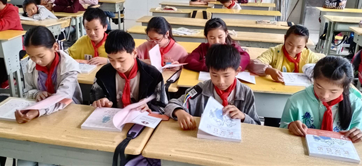 近日,魯?shù)榭h龍頭山鎮(zhèn)中心小學的陽光格外明媚,就在這一天同學們收到了一份特殊的禮物——《2020武漢日記:方艙“手繪小姐姐”的抗疫畫集》,孩子們一個個專心致志地閱讀起來。