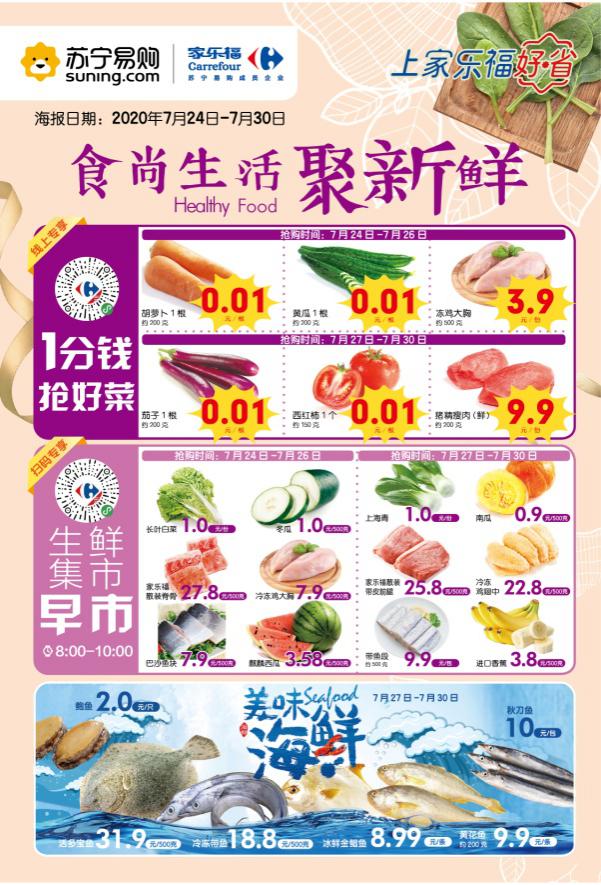 為慶祝進(jìn)入中國市場25周年,家樂福為線上用戶帶來專屬福利—“1分錢每天搶好菜”。即日起,消費(fèi)者只需支付1分錢,即可輕松為全家?guī)Щ匾坏澜】岛貌?,輕松享受便捷的品質(zhì)消費(fèi)。