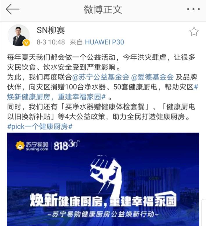 見圳客戶端·深圳新聞網(wǎng)2020年8月4日訊 昨日,蘇寧繼發(fā)布“戰(zhàn)汛六條”后,又聯(lián)合蘇寧公益、愛德基金會及老板電器、美的、A.O.史密斯、安吉爾、法迪歐、惠而浦等各大品牌,發(fā)起“煥新健康廚房,重建幸福家園”公益活動,面向?yàn)?zāi)區(qū)送出100臺凈水器、50套健康廚電,并向全民推出四大公益福利政策。